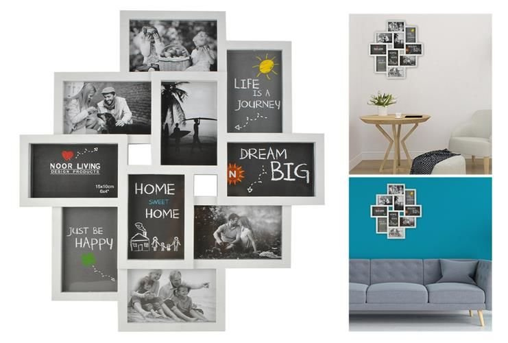 • ATRAKTIVNÍ DEKORATIVNÍ EFEKT  rám má originální tvar; Uspořádání fotografií vytváří zajímavý kolážový efekt; bude to pěkný doplněk interiéru a dodá mu charakter.