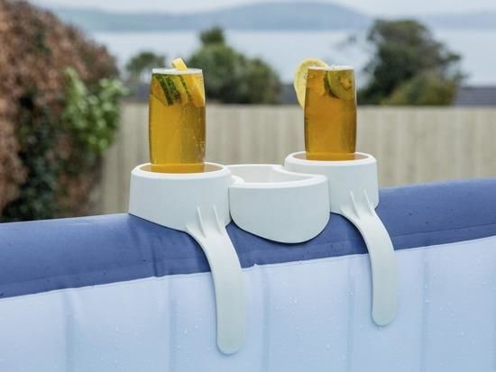 - 2 DRŽÁKY NA NÁPOJE NA TÁCKU – Také se potýkáte s věčným problémem vylézt z bazénu pokaždé, když dostanete žízeň. Držák na nápoje s táckem je mimořádně praktický produkt, díky kterému si můžete v bazénu odpočinout a kdykoli budete mít chuť napít se nebo jíst, stačí sáhnout po držáku na boční stěně bazénu.