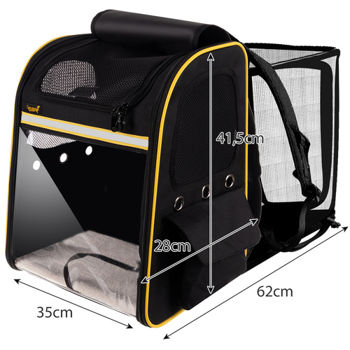 - VYZTUŽENÁ - taška je vyrobena z pevného materiálu, který je po stranách poměrně měkký a stabilní, a má dodatečné zpevnění na spodní i horní straně měkký vložka . Přední strana batohu je z průhledné silné fólie. Domácí mazlíček tak může pozorovat, co se děje venku, a během přepravy necítí žádné nepohodlí.