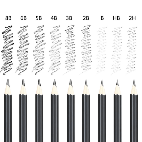 - 18 skicovacích tužek (2H / HB / B / B2 / B3 / B4 / B5 / B6 / B8)