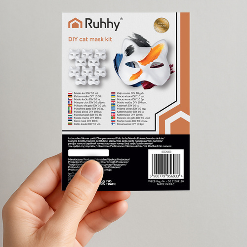 Kočičí maska na malování RUHHY Sada masky + gumy – kreativní DIY pro každou příležitost