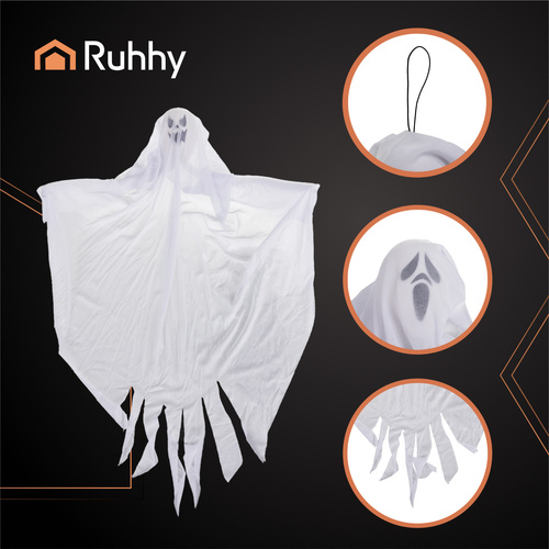 Vzdušní duchové z bílé látky s různými výrazy v obličeji jsou dekorací, která okamžitě navozuje pocit hrůzy. Látka, pohybující se ve větru, vytváří iluzi vznášejících se zjevení a jejich velká velikost je činí viditelnými z dálky a stávají se výrazným ústředním bodem aranžmá. Toto je sada 3 duchů, kteří se perfektně hodí na Halloween, tematické večírky, scénografii a domácí hororové aranžmá.