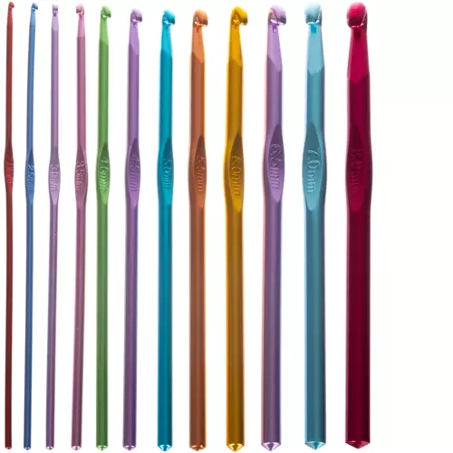 all crochet hook sizes are clearly marked - each aluminum crochet hook has a clear size marking and an ergonomic flattening that prevents hand fatigue, thanks to which you can easily reach the right tool, even during intense knitting