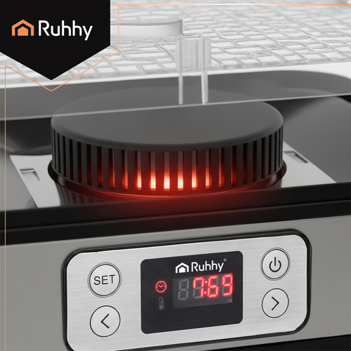 RUHHY Mushroom Dehydrator 5 trays 10 L, LCD, 24 h timer, 35-70°C + accessories - energy-saving and BPA FREE