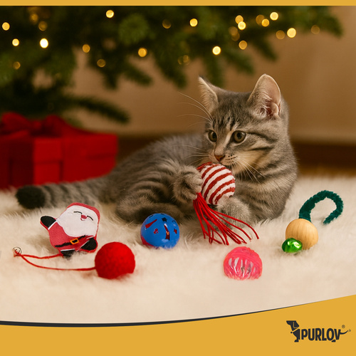PURLOV cat toys, Christmas toy set 6 pcs balls springs pompom!