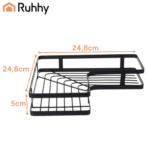 Ruhhy 2-piece corner bathroom shelf, black, Loft, no drilling required, for shower, hanging
