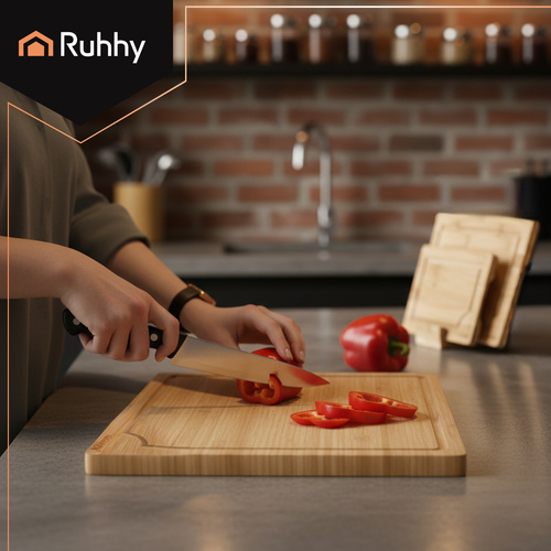 Deska bambusowa do krojenia- 3szt. + stojak Ruhhy