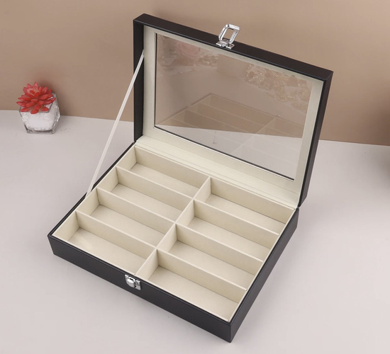 L'organisateur de lunettes est un article pratique pour ranger et organiser vos lunettes. Il s’agit de la forme la plus simple d’organisateur qui protège vos lunettes des rayures et des dommages. La couverture est en éco-cuir à l'extérieur et possède une doublure en flanelle à l'intérieur, elle possède également un fermoir pour éviter toute ouverture accidentelle. Un présentoir à lunettes est une option plus décorative qui vous permet de mettre en valeur votre collection de lunettes et d'y accéder facilement.