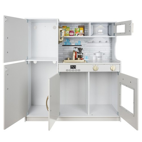 - ÉCLAIRAGE ET SONS LED - la cuisine est équipée d'une lumière LED qui peut être placée sous un placard, dans un placard ou dans le four - à vous de choisir ! L'éclairage donnera à l'enfant l'impression d'être dans une vraie cuisine , et l'effet sera encore plus grand lorsque la pièce est sombre, et la lampe permettra à l'enfant de préparer le dîner pour les poupées, un ours en peluche ou ses parents. De plus, les brûleurs de la cuisinière cliquent lorsque vous tournez les boutons ! Votre enfant sera ravi : la cuisine lui permettra de s'amuser pendant de nombreuses heures.