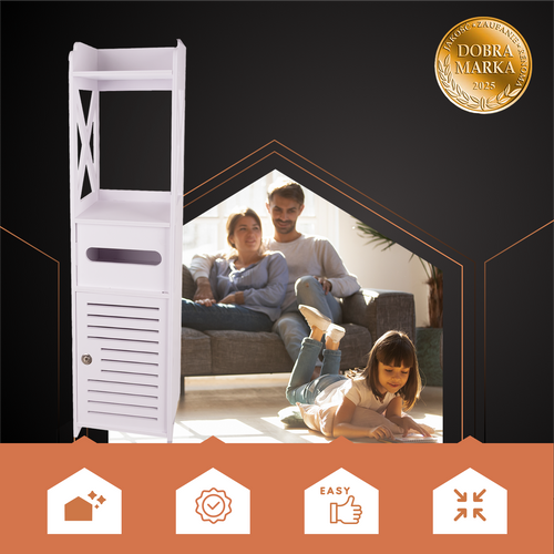 Meuble de salle de bain indépendant avec porte-papier toilette, verrouillable, étagère colonne en blanc RUHHY !