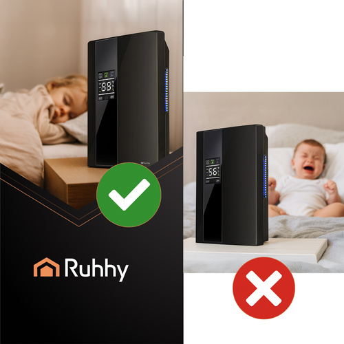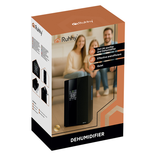 Prendre soin de   air pur, sec et frais   dans votre maison grâce à cet appareil 2 en 1.   RUHHY   Ce déshumidificateur et purificateur d'air combiné élimine efficacement l'excès d'humidité tout en rafraîchissant la pièce, en éliminant la sensation d'air vicié et en améliorant la qualité de la respiration. Silencieux, économe en énergie, doté d'une télécommande et d'un contrôle intelligent de l'humidité, il est idéal pour les salles de bains, les cuisines et les chambres. Il se met en marche automatiquement, précisément au moment opportun.