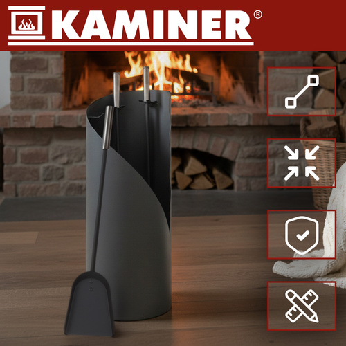 Accessoires de cheminée Loft, accessoires de poêle-cheminée, ensemble 4 en 1, support – solide, élégant et indispensable pour faire fonctionner la cheminée KAMINER !