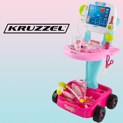 Das Set besteht aus 18 Elementen, die in einem handlichen und leichten 4-Rad-Trolley untergebracht sind. Die Anzahl der Teile ermöglicht eine praktische Nutzung des Sets. Arztzubehör und ein 2-stufiger Trolley mit nachgebildetem EKG-Bildschirm und Griff ermöglichen abwechslungsreiches und wiederholtes Spielen. Dank des „Aufsitzes“ kann das Kind das Spielzeug problemlos in ein anderes Zimmer transportieren oder mit in den Garten oder zum Spaziergang nehmen. Sie können Ihre Zeit kreativ mit Imitationen medizinischer Instrumente wie einem Stethoskop, einem Otoskop, einem Herzfrequenzmesser, einem Thermometer, einem Zahnspiegel, einem neurologischen Hammer, einer Spritze, einer Schere, einer Pinzette, Augentropfen und Handseife verbringen Tube, eine Schüssel, ein Skalpell, eine Brille ohne Gläser, eine Flasche, ein ansteckbarer Ausweis mit Platz zum Schreiben eines Namens und Anbringens eines Fotos sowie ein Notizbuch aus Kunststoff mit der Möglichkeit zum Aufhängen.