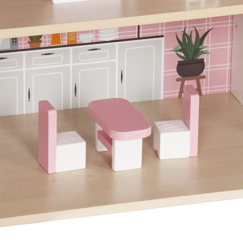- Langlebigkeit – das Puppenhaus und alle Holzelemente sind äußerst langlebig und widerstandsfähig gegen intensives Spielen. Dank der soliden Konstruktion halten sie viele Stunden kreativen Spiels aus