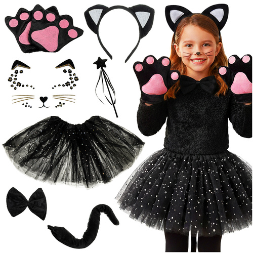 - Komplettset - das Kostüm besteht aus bis zu 7 Elemente : Rock, Gesichtsaufkleber, Stirnband, Zauberstab, Katzenpfoten, Schwanz und Fliege – alles, was Sie für ein komplettes Styling brauchen