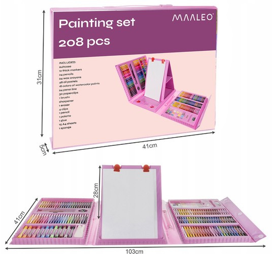 Priedai tarnaus ilgai – juose net 208 dalys – milžiniškas tapybos rinkinys su kreidelėmis lagamine, dažais, žymekliais ir pastelėmis, kurių užteks daugeliui savaičių intensyvių pramogų ir mokymosi , o lagamine taip pat tilps nauji priedai, kai seni susidėvės.