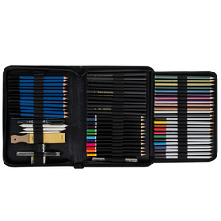 - DĖKLAS ĮTRAUKTAS - visas komplektas uždarytas elegantiškame medžiaginiame dėkle. Jo juoda spalva tiks tiek moterims, tiek vyrams, tiek mergaitėms, tiek berniukams. Apsauginių guminių juostų dėka kiekvienas gaminys turi savo vietą, todėl juos lengva laikyti ir transportuoti . Be to, jame yra vienas sulankstomas įdėklas priedams, tokiems kaip kreidelės, pieštukai, anglis ir kt. Visas daiktas užsegamas užtrauktuku ir turi pakabą.