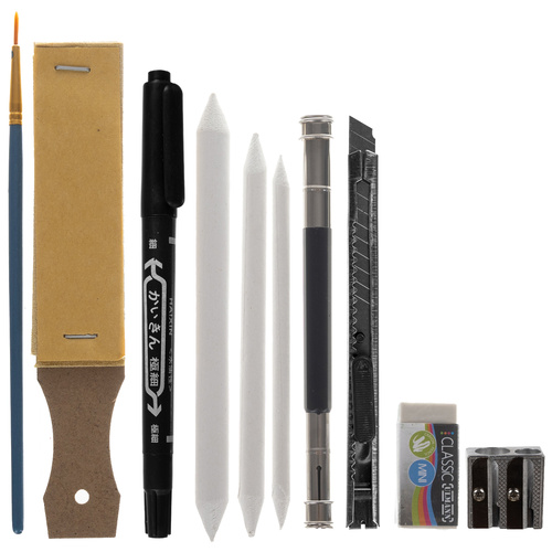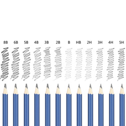 - 12 eskizų pieštukų (2H/3H/4H/5H/HB/B/B2/B3/B4/B5/B6/B8)