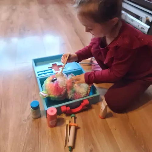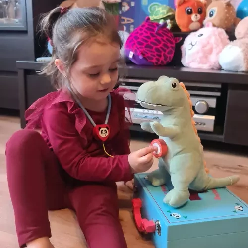 - KŪRYBIŠKOS PRAMOGOS – Šis unikalus gydytojo rinkinys leis jūsų vaikui apžiūrėti ir gydyti mėgstamų lėlių ar meškiukų dantis. Šis žaislas skatina kūrybiškumą ir socialinę sąveiką su bendraamžiais.