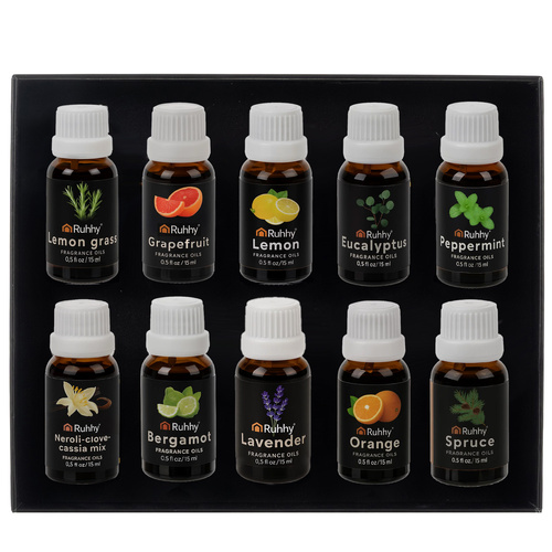 Kvapieji aliejai difuzoriui, drėkintuvui, lazdelėms, 10 x 15 ml rinkinys RUHHY!