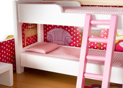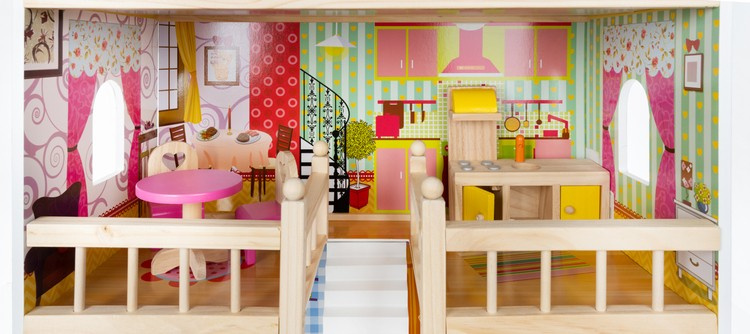 - ERDVUS Šis medinis lėlių namelis skirtas keturių lėlių šeimai. Jame yra trys aukštai, sujungti gražiais baltais laiptais, penki kambariai ir balkonas. Kiekviena lėlė svajoja apie tokį didelį namą!