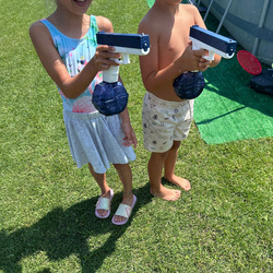 - ELEKTRINIS AUTOMATINIS VANDENS pistoletas - puikiai tinka įvairioms progoms. Žaidžiant sode tai bus puikus būdas atsigaivinti karštomis dienomis. Jis paįvairins jūsų laiką, praleistą prie vandens, suteiks daug pramogų paplūdimyje ar prie baseino . Jis taip pat puikiai tiks visų tipų susitikimuose lauke, įtraukdamas dalyvius ir suteikdamas nepamirštamų įspūdžių.