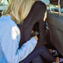 veido išpjova ir rankos skylės - galite patogiai palaikyti galvą ir laisvai naudotis telefonu, tai tobula sprendimas nuobodžiauti keliaujant, patogumas ir funkcionalumas viename