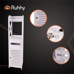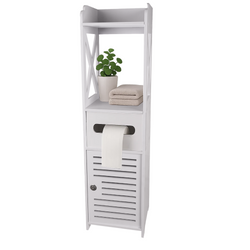 Laisvai pastatoma vonios spintelė su tualetinio popieriaus laikikliu, rakinama, koloninė lentyna, balta RUHHY!
