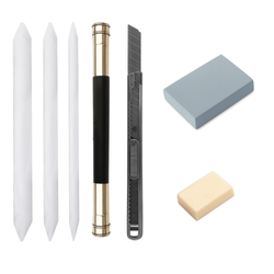 taip pat tinka pradedantiesiems - šis profesionalus eskizų rinkinys vaikams ir suaugusiems turi visus svarbiausius įrankius, kurių reikia pradedančiajam braižytojui, Rasite įvairių rūšių pieštukų, pakabukų, anglies žymeklių, trintukų, peilį ir prailgintuvą – visko, kas padės jums žingsnis po žingsnio lavinti savo kūrybiškumą.