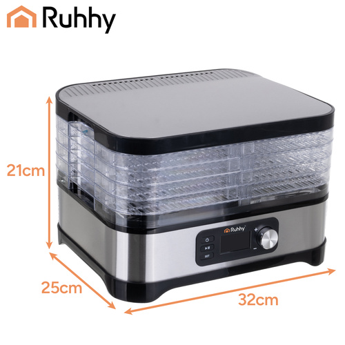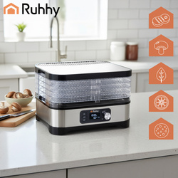 Norite, kad jūsų namai būtų aprūpinti maisto produktais ištisus metus? RUHHY maisto džiovyklė greitai ir tolygiai išdžiovina grybus, vaisius, daržoves ir žoleles. Iki 5 padėklų (10 litrų talpos), tikslus temperatūros reguliavimas nuo 35 iki 70 °C, 72 valandų laikmatis ir LCD ekranas užtikrina visišką proceso kontrolę – patogu, švaru ir ekonomiška. Rinkinį sudaro praktiški padėklai, kilimėliai ir sieteliai, 3 viename pjaustytuvas ir žnyplės.