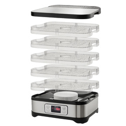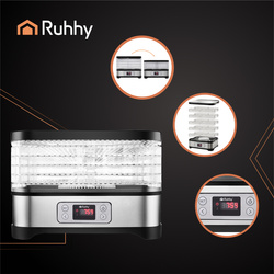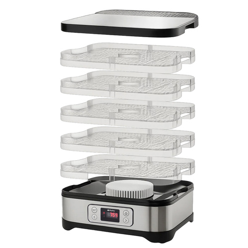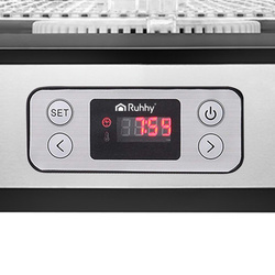 Universalus RUHHY džiovintuvas, kurio galia 400 W, leidžia džiovinti grybus, vaisius, daržoves ir žoleles – jis turi net 5 padėklus, kurių bendra talpa siekia 10 litrų, reguliuojamą temperatūrą (35–70 °C) ir aiškų ekraną su programuojančiu įrenginiu iki 24 valandų. Komplekte taip pat yra padėklai skystiems produktams, tinkleliai ir nelimpantys kilimėliai – maksimaliam patogumui. Taupus energiją ir pagamintas iš saugių medžiagų be BPA – idealiai tinka namų sandėliukui ištisus metus.