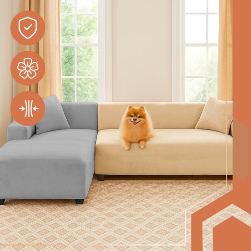 RUHHY kampinės sofos užvalkalas – smėlio spalvos elastingas velvetas, 145–185 cm