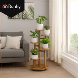 Stilingas ir funkcionalus RUHHY augalų stovas, pagamintas iš natūralios pušies medienos, gali talpinti iki 7 vazonų 6 lygiuose . Puikiai tinka svetainei, balkonui ar terasai. Jis patraukliai išdėsto augalus, taupo vietą ir yra lengvai išdėstomas . Dėl fiksuojamų ratukų galite jį lengvai perkelti kur tik norite.