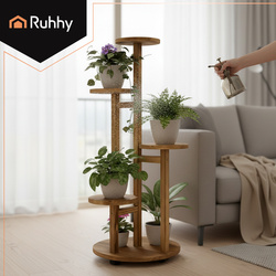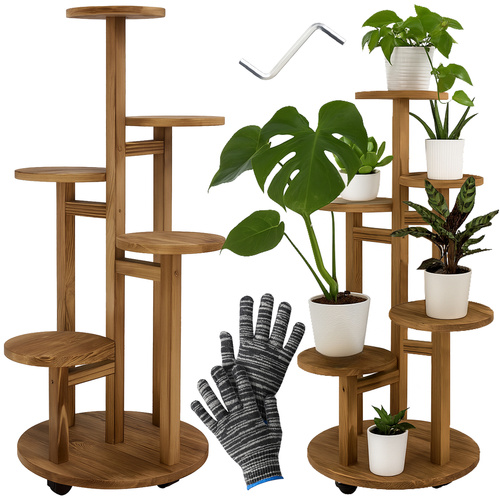 Medinis aukštas gėlių stovas gėlėms ir augalams, 6 lygių stovas RUHHY 7 vazonams - elegancija ir tvarka jūsų augalams