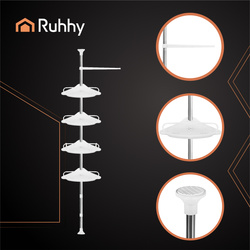 RUHHY kampinė ir teleskopinė dušo lentynėlė vonios kambariui – tvarka, patogumas ir modernus stilius jūsų vonios kambaryje!