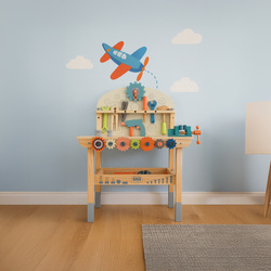 žadina vaikų susidomėjimą – medinės dirbtuvės yra ne tik žaislas, bet ir lavinamoji priemonė, lavinanti koordinaciją, vaizduotę ir rankų įgūdžius, kiekvienas vaikas ras kažką įdomaus, nuo spaustuvų sukimo iki varžtų sukimo