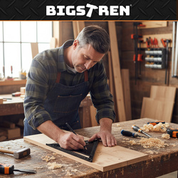 Aliuminio staliaus kampainis, staliaus liniuotė, konstrukcinis kampas 12" 90° ir 45° - tikslūs matmenys + 5 pieštukai BIGSTREN rinkinyje!