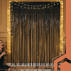 Juoda užuolaida, pagaminta iš blizgančios folijos, yra Ryškus dekoratyvinis elementas, puikiai tinkantis kaip nuotraukos fonas, įėjimas į kambarį arba kaip sienos ar scenos dekoracija. Tai jau paruoštas aksesuaras, puikiai tinkantis Helovinui, gimtadienio vakarėliams, mergvakariams, Naujųjų metų išvakarėms, vestuvėms, kūdikio sutiktuvių šventėms ir teminiams renginiams. Tiesiog priklijuokite ir jis paruoštas .