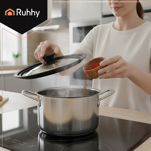 Karščiui atsparus stiklas – leidžia valdyti gaminimo procesą nepakeliant dangčio – mažiau netvarkos ir daugiau patogumo.