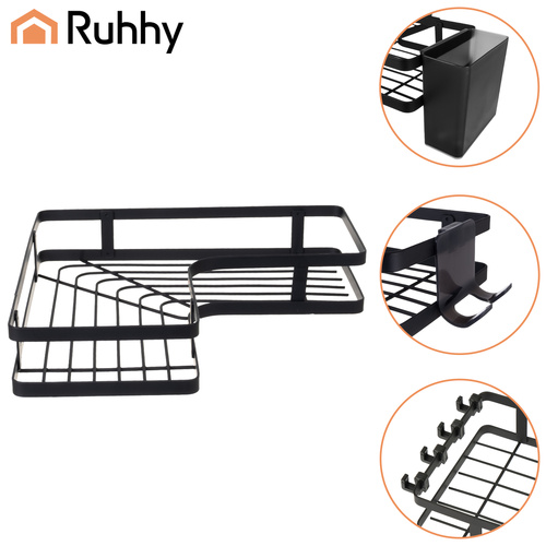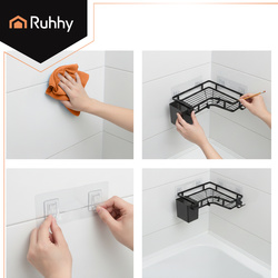 Ruhhy dviejų dalių kampinė vonios lentyna, juoda, Loft, nereikia gręžti, dušui, pakabinama