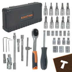 „Bigstreen“ 46 dalių rinkinys – tai patogus įrankių rinkinys mažame, patogiame dėkle. Rinkinyje yra dažniausiai naudojami lizdai, TORX, Philips, Pozidriv, HEX atsuktuvų antgaliai, taip pat terkšlė, prailginimai ir priedai. kurie leidžia jums atlikti Greitas namų remontas, automobilio priežiūra, baldų surinkimas ir kasdienė buitinės technikos priežiūra . Kiekvienas daiktas turi savo atskirą daiktadėžę, taip taupant laiką ir užtikrinant tvarką. Tai praktiškas rinkinys „pasidaryk pats“ entuziastams ir tiems, kurie nori turėti paprastus, patikimus įrankius po ranka.