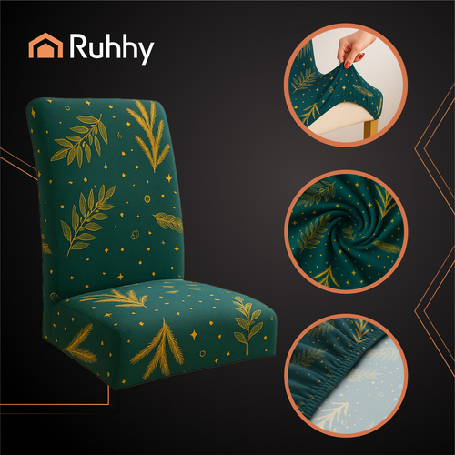 Pokrowce marki RUHHY wykonane z miękkiego, przyjemnego w dotyku materiału idealnie dopasowują się do kształtu krzesła, nadając mu odświętny i stylowy wygląd, a jednocześnie chronią przed zabrudzeniami, zadrapaniami czy codziennym zużyciem. Zielony, świąteczny wzór wprowadza do wnętrza wyjątkowy klimat i pięknie komponuje się z dekoracjami bożonarodzeniowymi. Rozmiar 65x35x40 cm sprawia, że pasują do większości standardowych krzeseł dostępnych na rynku, a zestaw 6 sztuk pozwala szybko i efektownie odmienić cały stół.