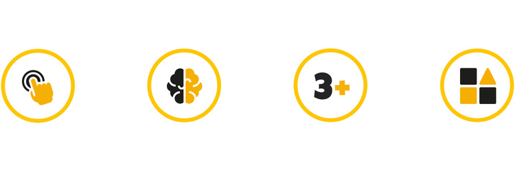 • Zróżnicowane elementy manipulacyjne, dopasowane do małych rączek dzieci