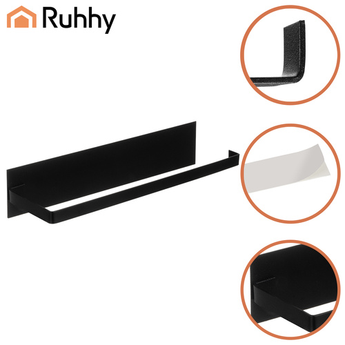 Uchwyt na ręcznik papierowy RUHHY 25 cm - metalowy czarny wieszak do kuchni i łazienki - montaż bez wiercenia lub na śruby - pod szafkę i na płytki
