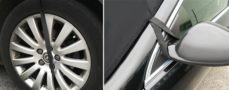 простая сборка - Защитная пленка на окно автомобиля легко устанавливается с помощью резинок - достаточно затянуть дверь, прикрепить ее к зеркалу и колесам, специальные крючки гарантировать быстрое и надежное крепление