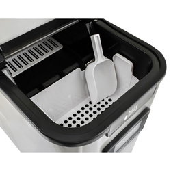 ? ЖК-ДИСПЛЕЙ + ЗВУКОВАЯ ИНФОРМАЦИЯ - льдогенератор имеет ЖК-дисплей, благодаря которому можно легко настроить имеющиеся в нем функции. На дисплее отображается время, размер кубиков и функции, которые выполняются в данный момент. Дополнительным преимуществом является звуковое оповещение о переполнении/низком уровне воды в корзине.