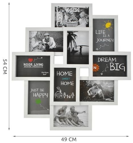 • ПРАКТИЧЕСКИЙ – рамка вмещает до 10 фотографий с максимальным размером 10х15 см в одном месте (формат 9х14 см виден снаружи); благодаря комбинированным элементам мы экономим место дома для размещения 10 традиционных рамок; простой способ повесить несколько фотографий без особых усилий.