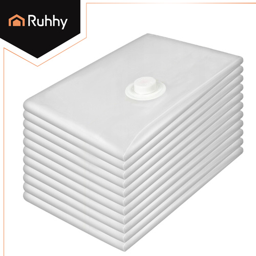 Набор из 10 вакуумных пакетов многоразового использования. Хранящиеся вещи прекрасно защищены от пыли, грязи, воды, влаги и моли. Одежда, хранящаяся без доступа воздуха, дольше выглядит новой. Чтобы отсосать воздух, достаточно воспользоваться обычным пылесосом или входящим в комплект воздухоотсасывающим насосом. Это позволит вам сэкономить много места.