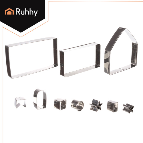 - СПЕЦИФИКАЦИЯ - материал: нержавеющая сталь; цвет: серебро; количество форм: 10; размеры формочек: 17х10х2,5 см; 3 х 2 х 2,5 см; вес: 135 г; вес в упаковке: 295 г.