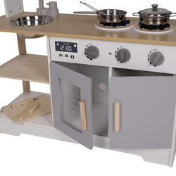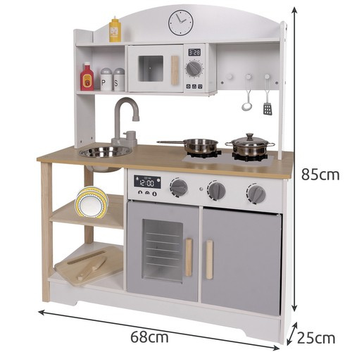 Деревянная детская кухня KRUZZEL с аксессуарами, звуком и кастрюлями 85 x 68 x 25 см